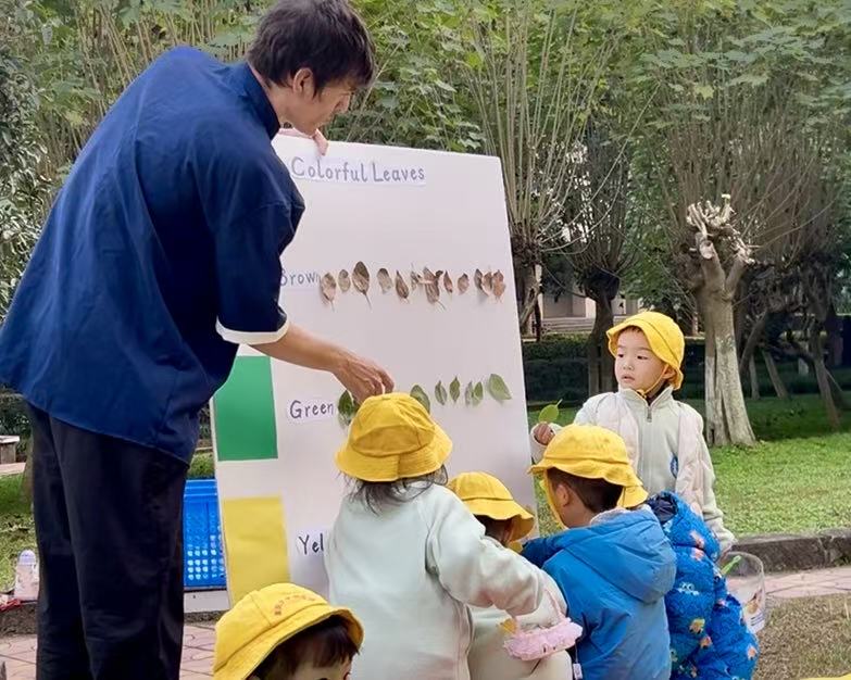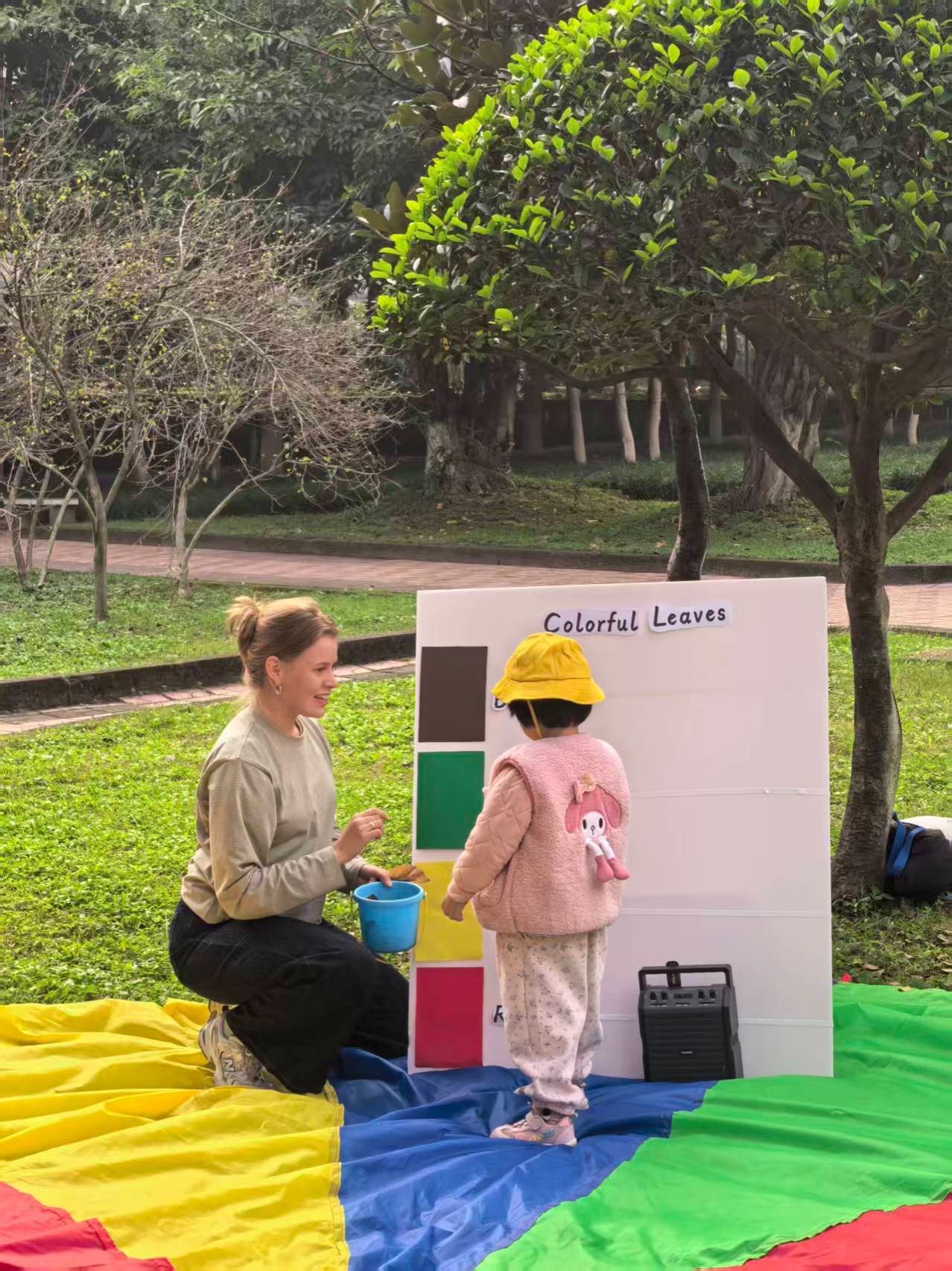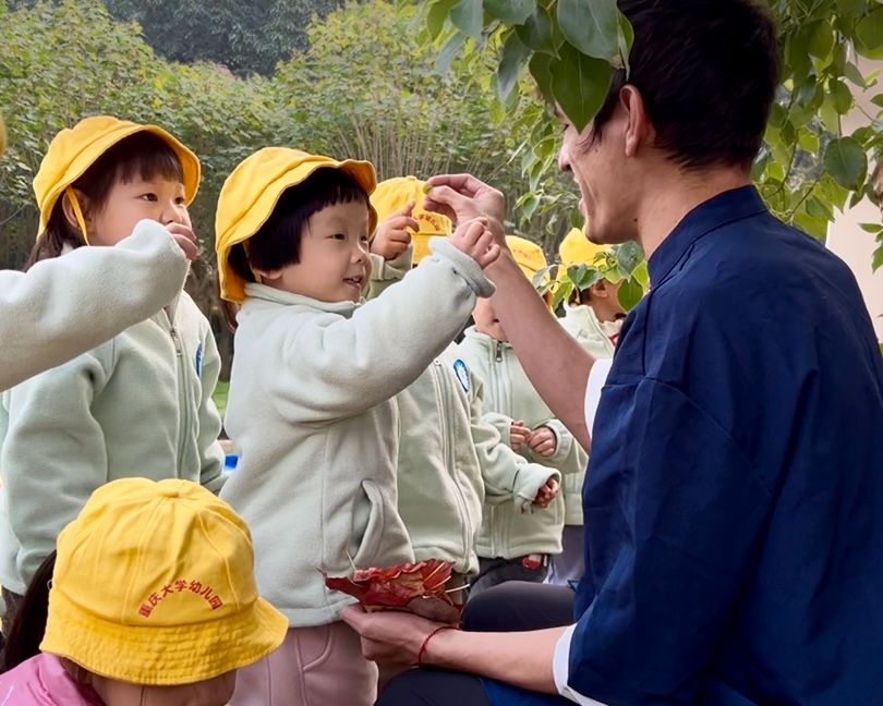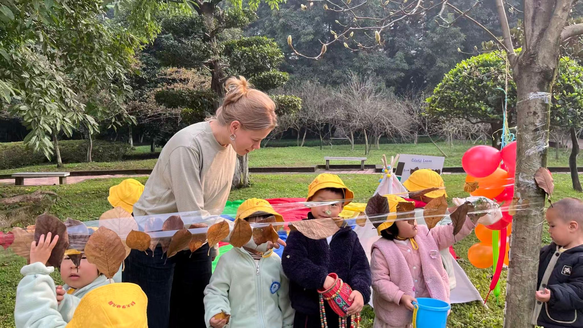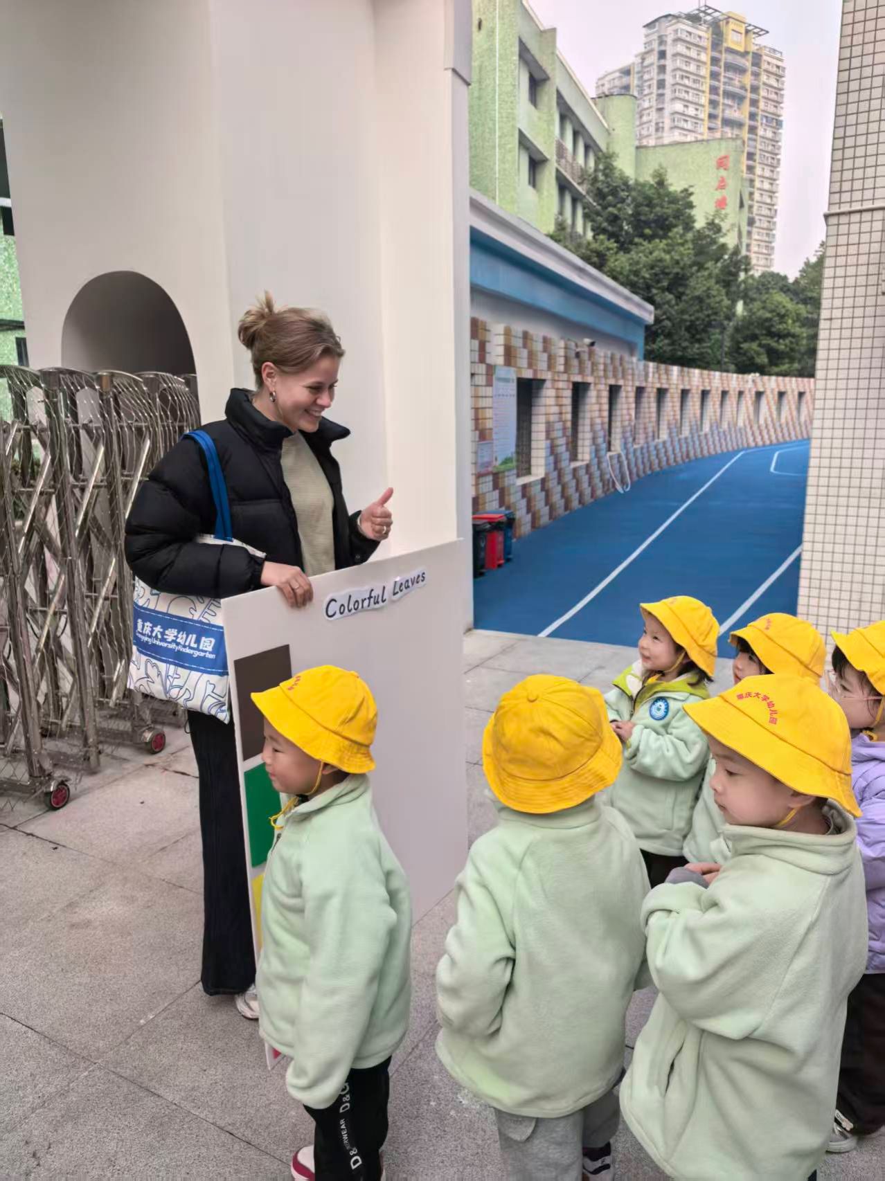 联合重庆大学幼儿园开展“与落叶对话”户外沉浸式英语教学活动。留学生辅导员黄恩珂带领三名优秀的留学生志愿者——来自巴西硕士研究生亚瑟、来自哥伦比亚的语言生罗珊珊以及荷兰语言生BLOK MINKA参与了此次活动,通过协助幼儿园教师引导幼儿在自然环境中开展英语互动,助力活动取得圆满成功。