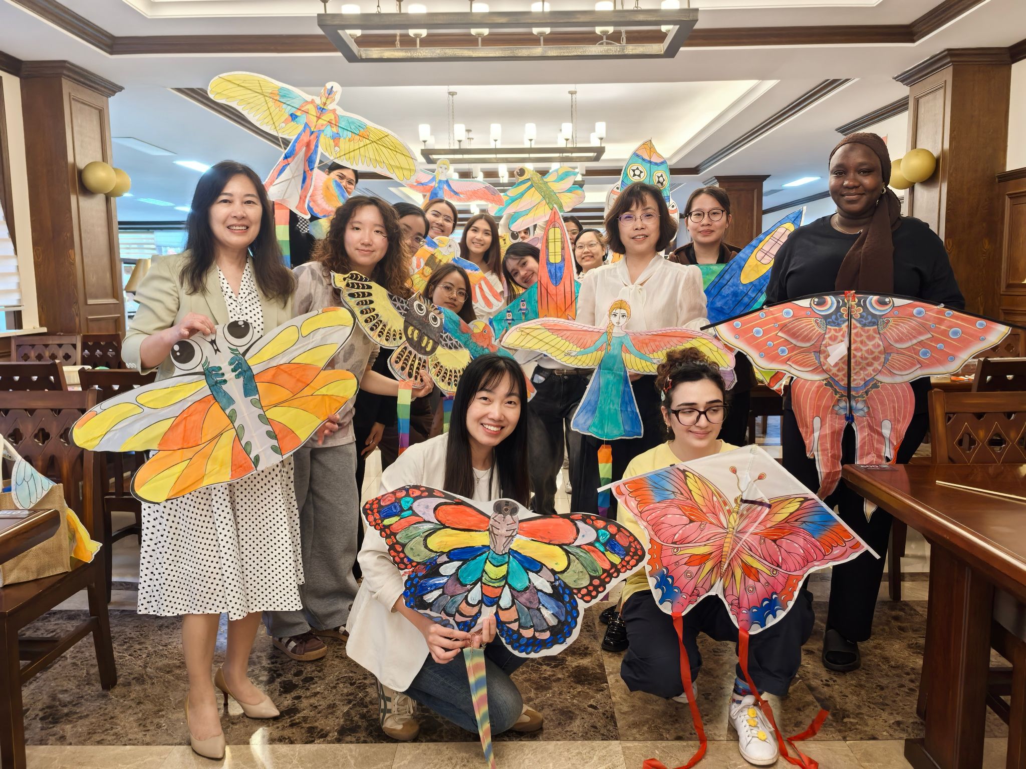 合影结束后,活动进入中国非遗文化体验环节——留学生同学体验绘制风筝。这一环节不仅让留学生感受到传统手工艺的魅力,也为春日校园增添了浓厚的文化趣味。