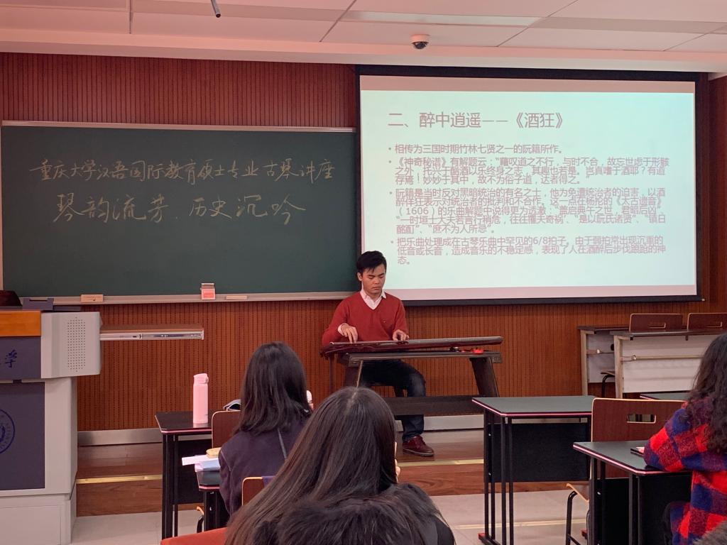 汉语国际教育专业主办的两场传统文化讲座——古琴系列于虎溪校区顺利举行。为促进汉语国际教育专业学生深耕更丰富的传统文化,此次古琴讲座有幸邀请到八荒琴院创始人李程先生莅临现场,带大家一同走入中国传统乐器古琴的绝伦世界。