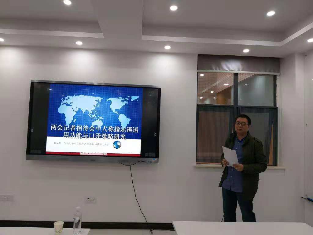 硕士生导师、副教授张易凡博士,基地专职研究员李良炎博士主持了本次讲座。本次讲座题目为:基于语料库的人称指示语语用功能与口译策略研究。基地专兼职研究员、澳门美高梅赌场
