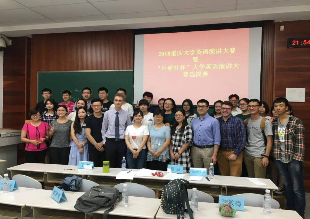大学英语二课堂辅导团队的专项指导,为下学期参加重庆市级比赛做好准备。此次大赛由外语学院副院长李小辉副教授,重庆大学外语教育中心副主任冯巨澜副教授以及学办主任朱洪召老师全程参与以保障此次比赛的顺利进行。