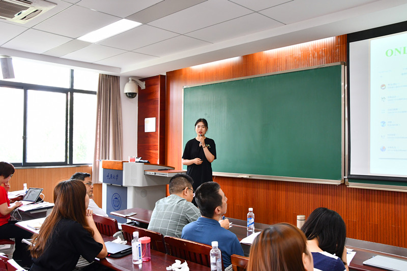 的第四位助教张琦菲幽默开场,并由此点明她担任助教工作的重点:提高同学口语表达能力,激发英语学习兴趣。除了分享开展English corner活动的经验、利用online和offline的O2O模式进行助教工作之外,她坦言做个有心人十分重要。人与人的熟悉和信任是相互的,以负责的态度帮助每位同学,同学们也会以更优异的表现作为回馈。