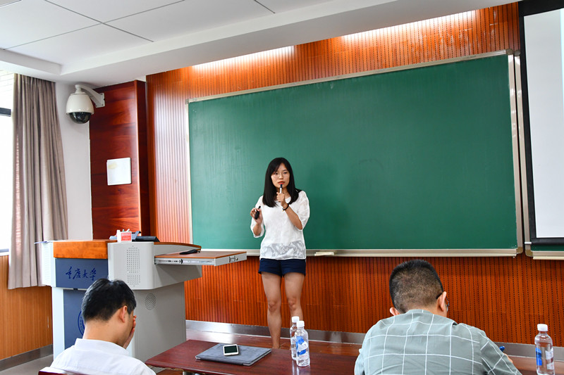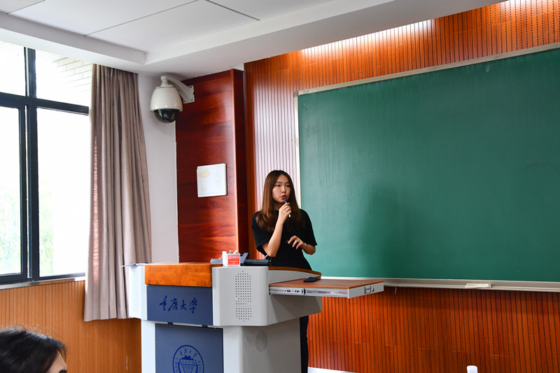 第二位分享的助教是来自研究生一年级的陈疏影同学。她的分享主题是“做好助教工作能促进‘三赢’局面”。所谓“三赢”的内涵即为:在助教工作的顺利开展过程中,助教本身以及助教所面对的学生和老师都能从中获益,并且这种获益是全方位的、强有力的、无所不包的。在介绍工作内容时,她主要从三个方面进行了阐释:(1)助教和网络学习平台的交互能够加深三方对虚拟学习社区的融入度,促进技术层面上的“三赢”;(2)助教和学生之间的互动能够打破沟通障碍,促进学习环境中交流的“三赢”;(3)助教和老师之间的互动能够反应学习真实情况,促进学习成效上的“三赢”。最后,她对自己的心得体会做了一个总结,列举了她在助教工作中的收获,激励大家砥砺前行、不忘初心。