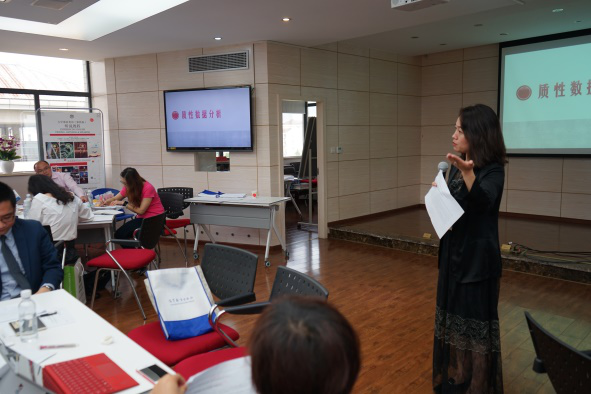 13日上午,北京外国语大学张虹老师则带领学员了解质性研究,为什么可以开展质性研究,以及如何开展质性研究。张虹老师也是以自身的研究为案例,引导学员们开始进行解码、分类等工作。整个工作坊采用“做中学”的基本原理,让老师们实实在在地一边了解质性研究的本质,一边开展基于一定数据的分析。学员们对于质性研究表现出了及大的兴趣。