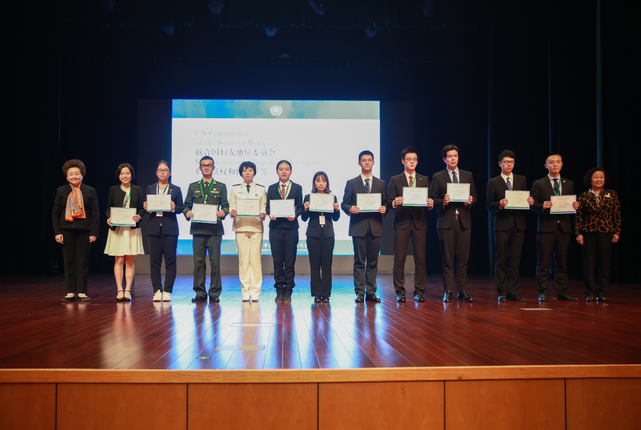 2014级本科生庞瑜、数学与统计学院2016级本科生苗镐凭借优异的会前准备获得该大会UNSCW委员会重要席位。苗镐同学凭借优异的表现荣获“最佳文件”奖。