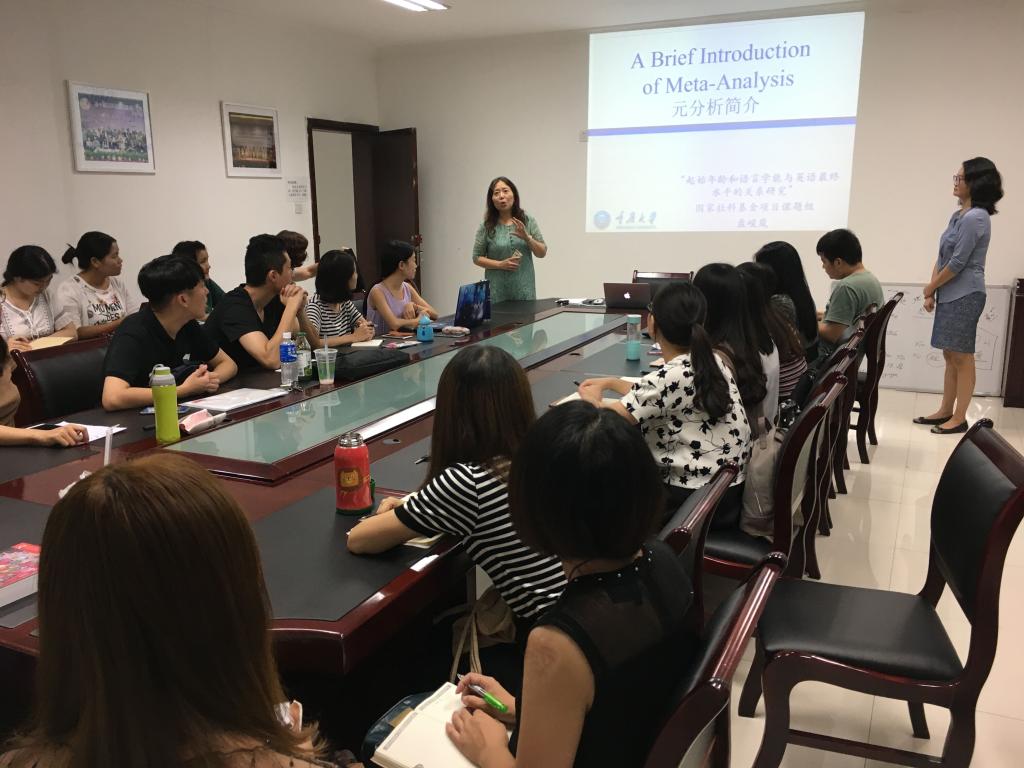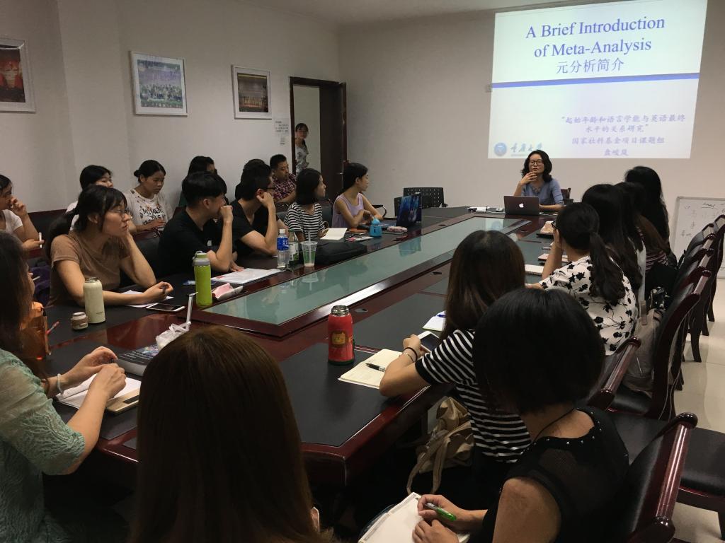 英语系盘峻岚老师做了题为“元分析简介(An Introduction of Meta-analysis)”的专题报告。此次学术沙龙由项目组负责人李红教授主持,20余名澳门美高梅赌场