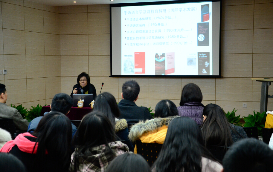 邓慧兰教授的“手语研究与培训”主题给在场的相当一部分师生带来了对语言学研究的很多新认识。。邓教授是香港中文大学手语及聋人研究中心的主任,她自上世纪90年代便开始从语言学的角度研究香港手语及聋童的学习情况,更专门为聋人学生设立了手语研究及手语教学的文凭和高级文凭培训课程,使他们具备了报考大学的资格。邓教授系统地讲解了香港手语的研究背景与愿景,以及手语语言学的应用,为在场的语言学习者和研究者开拓了新的思考空间。