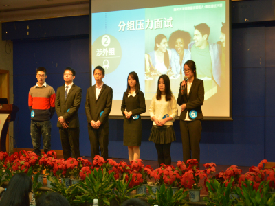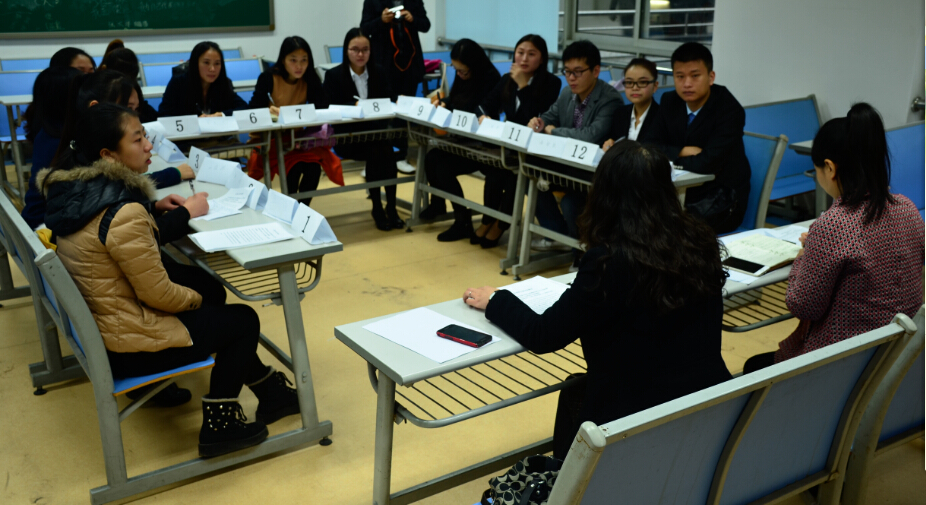 模拟面试大赛的初赛于11月23日在重庆大学B区第二综合楼举行,整个赛程从上午9点开始持续到下午3点结束。面试初赛邀请到的评委有仲量联行(外企)重庆公司人力资源总监;长安福特汽车有限公司(合资)人力资源经理以及中电投远达环保工程有限公司(上市公司)国际合作部经理。另外,来自于外语学院研究生公共英语系的黄萍教授,向朝红副教授及李雁老师参与协作初赛的全过程。面试初赛由三位专业的评委对选手在群面及单面环节的表现分别进行考量与评分,三位英语老师不介入考评,体现了比赛的真实性,公正性与专业性。本次英语面试不仅需要面试者有较好的英文口头交际能力,还对逻辑思维能力和沟通协调能力等提出了更高的要求。虽然第一次参加这样的英文面试,涉外组面试者的表现却丝毫不逊色于中文组。三位评委表示,选手们的表现可圈可点,在模拟面试中表现出了真正求职者的姿态,希望选手们能够将比赛中学到的经验运用到日后的实际招聘中。比赛结束之后三位评委还与三位老师进行了交流,她们传递的用人单位对人才要求的信息为我校英语教学改革提供了许多宝贵的启示。经过初赛后,在报名参加比赛的76名选手中,最终筛选出6位优秀选手进入决赛。