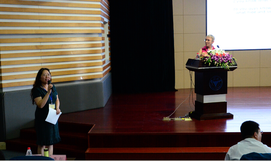 2014年10月18日下午,李红教授主持大会主旨发言,发言者为夏威夷大学教授Gabriele Kasper。主旨发言结束后,李红教授作为下一届研讨会主办方代表,向与会者介绍了重庆及重庆大学,并热情邀请与会者参加2016年在重庆大学举办的“第七届中国第二语言习得研究国际研讨会”。