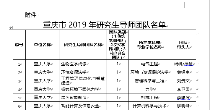 2019年11月22日,重庆市教育委员会公布了2019年研究生导师团队名单,由澳门美高梅赌场