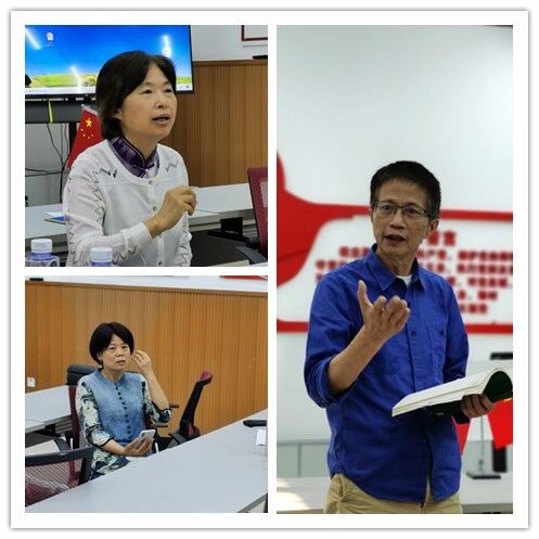 接下来,五位一线党员教师就各自教学实践进行了分享。党支部书记何欣忆副教授基于《科技翻译》课程,分享了科研能力与家国情怀双提升的课程思政育人模式。该模式通过提升教学团队党性素养,形成教师思政影响力,并在构建课程内容时注重学生专业技能和家国情怀的双重提升,同时通过“线上+线下”相结合的教学流程提高教学效能;党支部宣传委员熊菲围绕主题“英语教学思政与外语教师的本职”分享了《学业素养英语课程》课程思政案例,包括思政课程对外语教学提出的要求及其落实;学业素养英语课程主任刘世平分享了如何借助文本分析工具等技术讲好大学英语教学中的“中国故事”。他认为,选用的语言材料要融入中国故事、突出中国成就;副教授方玲以《中美文化比较》为例,分享了研究型课堂的课程思政教学模式探索的成果,从“挖掘思政元素、确立思政目标”、“价值引领与知识教学自然融合”和“专业课程与思政教育无缝衔接”三方面阐述了课程思政的建设路径;党员教师陈晓莉以《美国社会与文化入门》课程为例,挖掘外语教学中的文化思政元素。最后,三位教授就发言老师的案例分享做出了点评,分析其优缺点并提出优化方案。