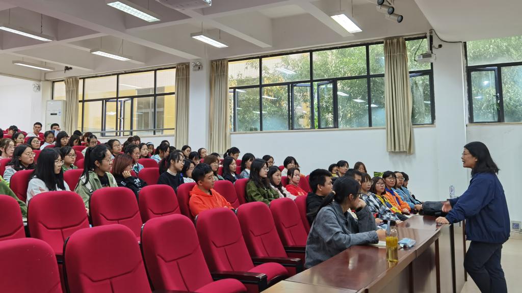 会上,首先由卢桂华老师发言。卢桂华老师指出,同学们进入大学学习,是从高中生到成年人身份转换的重要标志。大家应该脱离“温室花朵”的自我认知,培养强烈的责任意识。同学们在发现自己英语学习水平与他人有差距时,要保持健康、良好的心态,承认差距,弥补差距,学会宽容,接受不完美的自己。在未来规划方面,卢老师提醒同学们要多关注自己的长处与优势,为将来的专业方向打下坚实基础。在日常生活中,卢老师希望大家心胸宽广,团结同学,保持和谐的人际关系。