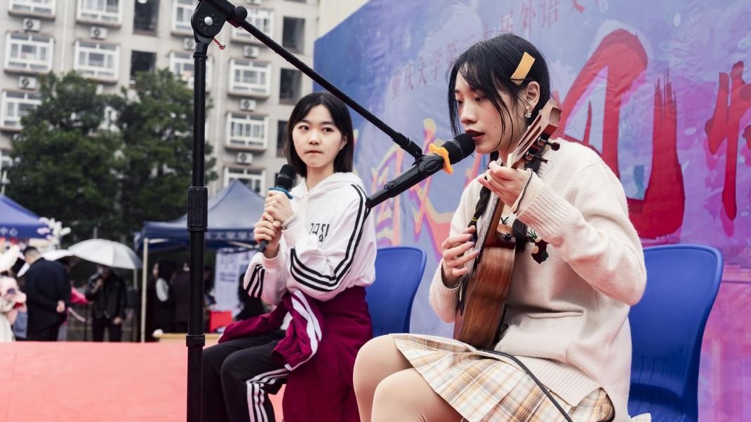 礼仪队的同学们带来了一场精彩的充满异国风情的T台走秀。来自航空航天学院的刘桂园、黄尹同学带来的《打上花火》舞蹈和重庆大学学生艺术团管乐队的《千与千寻》经典曲目合奏渲染了会场的异域风情。除此之外,中间还穿插了有趣又紧张的抽奖环节,奖品丰富。活动现场一片欢声笑语,即使是在细雨蒙蒙的天气,同学们依然热情高涨。