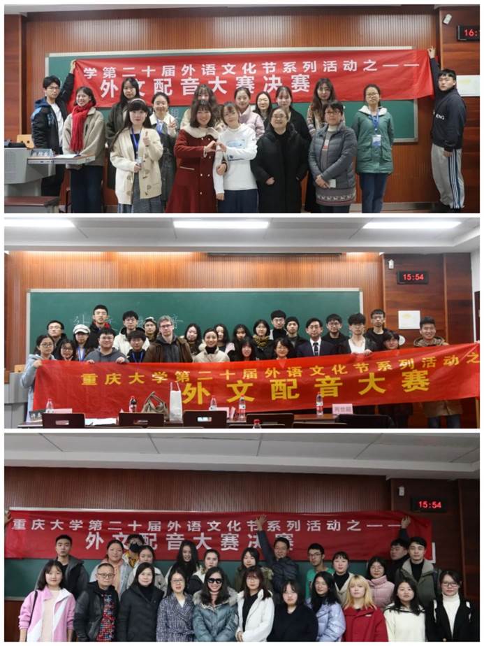 2020年12月3日,重庆大学第二十届外语文化节系列活动之外文配音大赛在重庆大学虎溪校区圆满结束。配音大赛分为英专组、公外组、日德组三个组,吸引了来自全校各学院219位选手,共计71个小组参加。