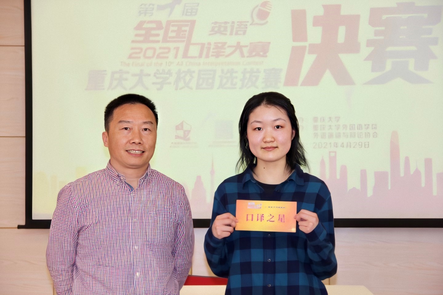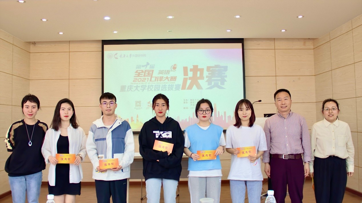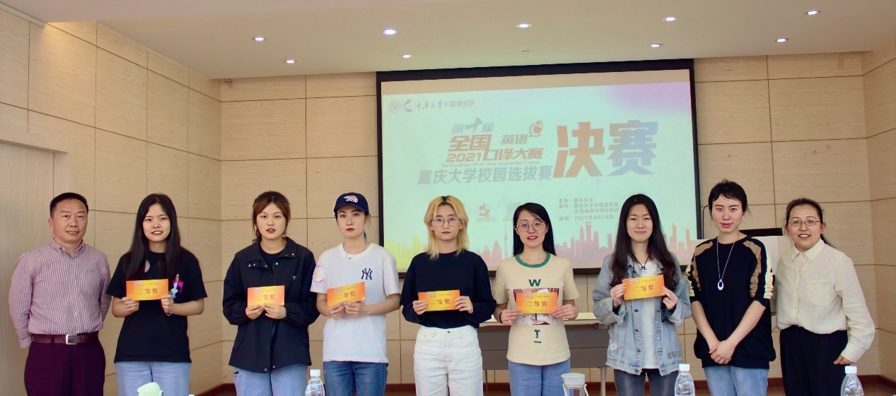 大赛中表现突出的选手,在评委评议后,将被推荐代表重庆大学参加第十届全国口译大赛(英语)重庆市复赛,继续为校争光。至此,重庆大学全国口译大赛(英语)校选赛圆满结束。