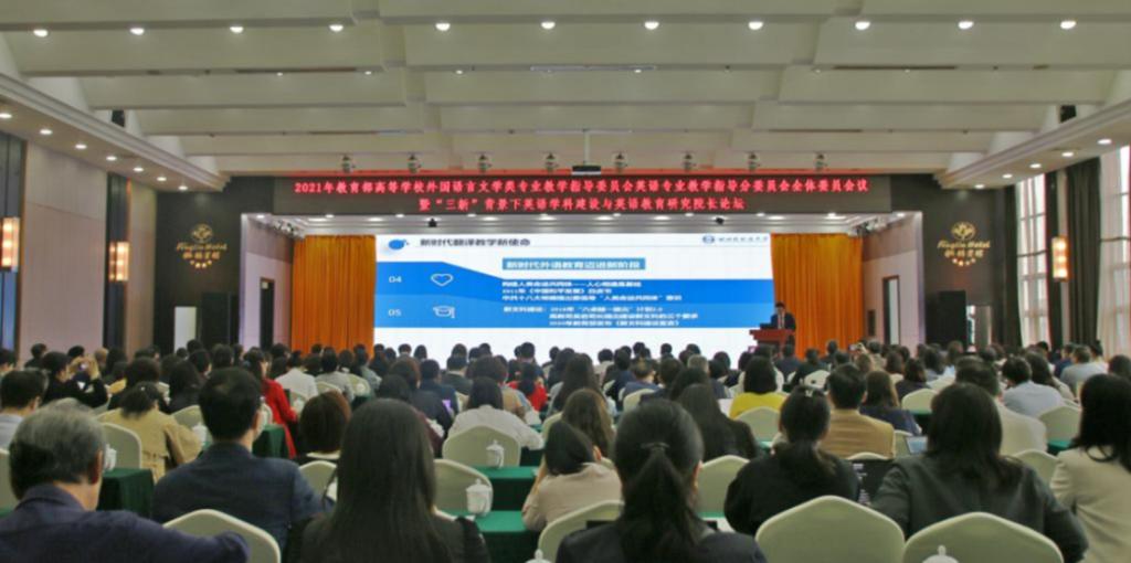 郭英剑教授及外语教学与研究出版社总编辑徐建中主讲,演讲内容聚焦《普通高等学校本科英语类专业教学指南》的指导作用,紧紧围绕“三新”背景下国家一流英语类专业建设、卓越外语人才培养、英语类专业教材建设等热点议题。论坛下午场主要包括题为“新时期英语类专业教材建设与教材使用”的圆桌论坛及五个会场的平行论坛,论坛主题多样,共同探讨新时代外国语言文学学科建设和发展。