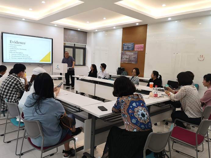 陈愉老师结合本次在线培训,分享了他对于EAP教学研究的思考。首先,EAP是一个非常重要的教学研究发展方向,是我们大学外语教学未来发展的重要路径。它需要我们对教学内容做出重大改变,需要从通用英语向学术英语转型,即阅读材料应该具有学科学术性,写作应该强调writing from sources,听说应该强调lecture listening和presentation;其次,教学应该考虑以产出为导向,以essay写作为抓手,以学术阅读技能为辅助,补充学术听说训练,全面促进学生学术沟通能力的提高;最后,深度了解学生、学院和学校发展的需求,群策群力做好相应的EAP教学材料的收集与准备和教学设计,是成功进行EAP教学实践的基础。