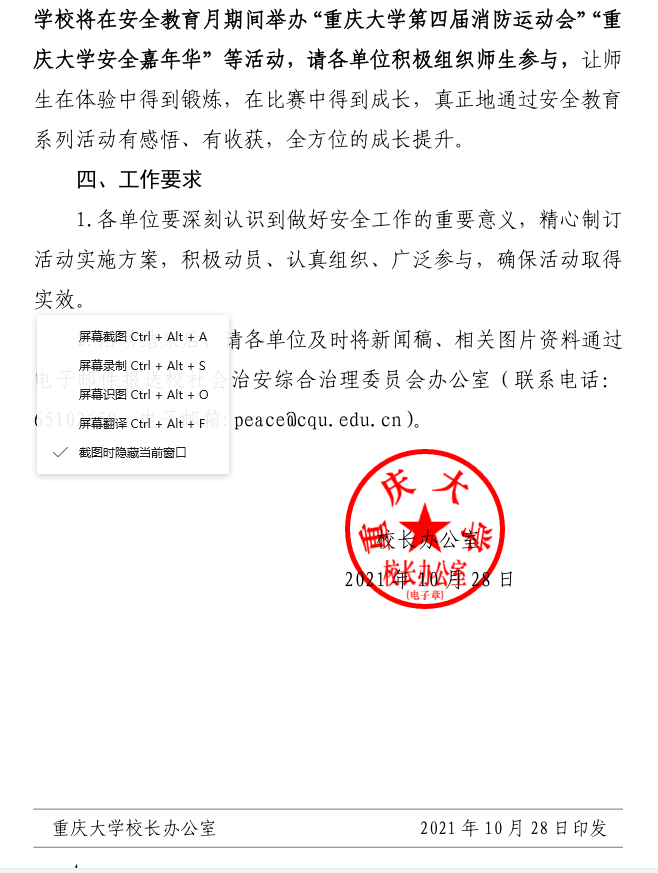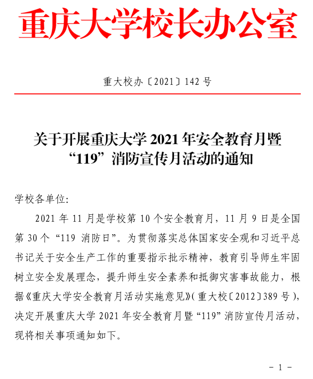 【转】关于开展重庆大学2021年安全教育月暨“119”消防宣传月活动的通知