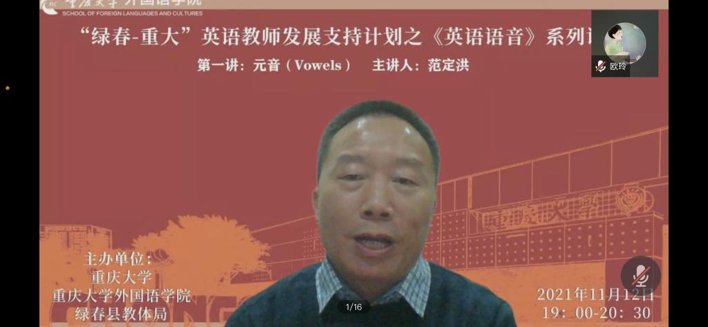党委组织的“绿春-重大”英语教师发展支持计划系列讲座之“英语语音”的第一讲通过在线方式顺利举行,讲座由澳门美高梅赌场