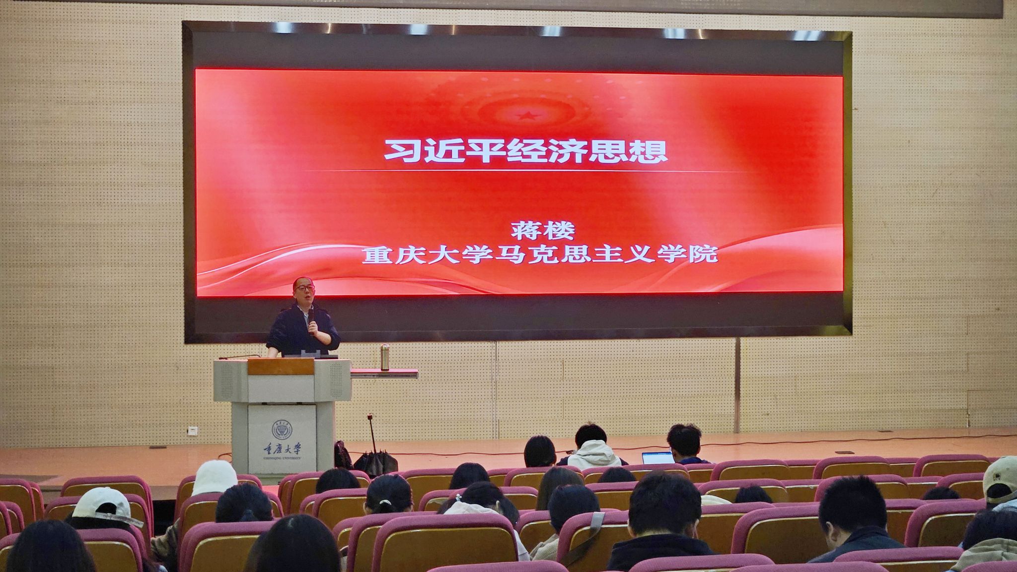 党委、虎溪党工委、数学与统计学院党委、物理学院党委、化学化工学院党委、大数据与软件学院党委、药学院党委等7个学校二级党组织,共计370余人。此次讲座教学的主讲嘉宾是来自重庆大学马克思主义学院的蒋楼老师。
