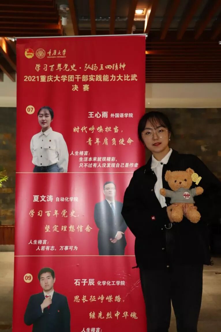 的王豫湘,王心雨,程欢欢三名同学以优异的表现在数十位参赛选手中脱颖而出,于26日下午的决赛中,分别荣获两项三等奖,一项优秀奖,以斐然的成绩在重庆大学2021年“五四”评优表彰中获得“十佳优秀共青团干部”称号。