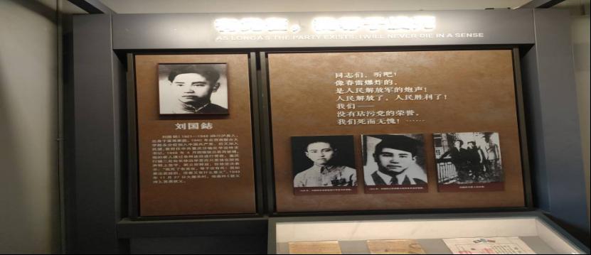 在参观中,实践团成员注意到和重庆大学有着深深渊源的刘国志烈士,其未婚妻曾紫霞是重庆大学医学院学生,时任中共南方局重要干员的刘国志以在重庆大学工作的身份,发展了曾紫霞等一批中共党员。1948年两人被国民党反动派抓捕,刘国志烈士为掩护曾紫霞出狱,动用自己的家庭关系拒不承认曾紫霞的共产党党员身份,称其“被自己欺骗”。刘国志烈士自己却宁死不屈,不愿意向国民党反动派妥协,最终被残忍杀害。