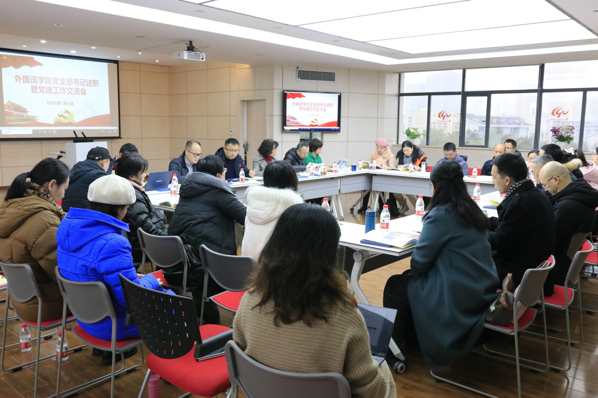 党委在外语学院楼501会议室召开了2023年度党支部书记述职暨党建工作交流会。会议由学院党委书记欧玲主持,学院党委委员,各教工党支部书记、支委委员,各学生支部书记参加了会议。