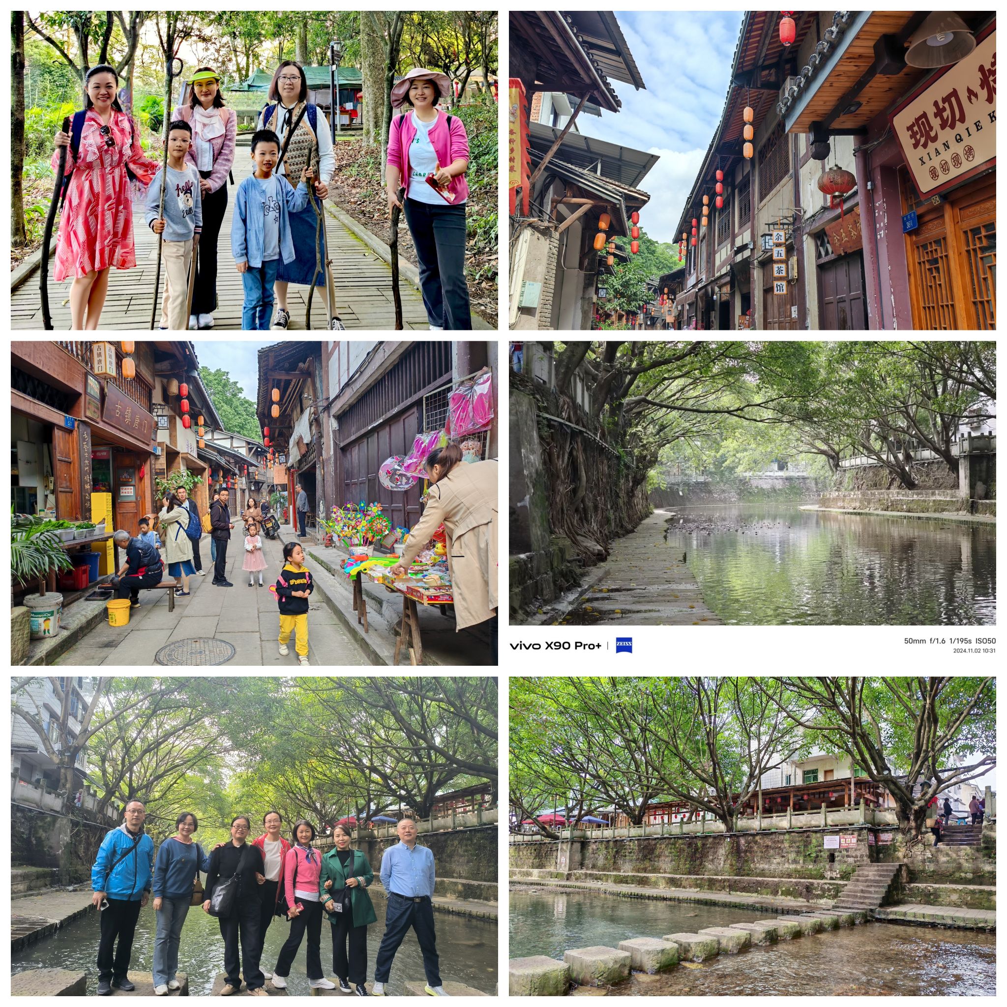 此次秋游目的地是北碚区两座充满魅力的古镇。上午,老师们来到偏岩古镇。踏入古镇,仿佛踏入了一幅古朴的画卷。古镇依山傍水而建,一条蜿蜒的黑水滩河穿镇而过,河上横卧着古朴的石桥。大家沿着青石板路前行,感受着古镇的宁静与闲适。在这里,时间仿佛慢了下来,每一处风景都成为老师们心中的美好记忆。