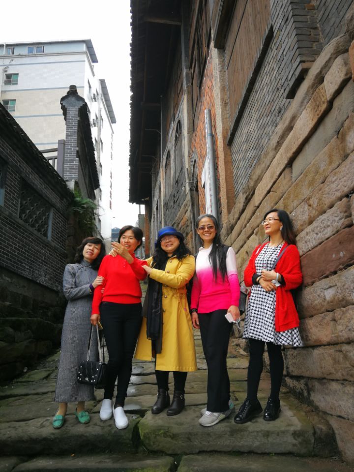 白沙镇是万里长江上游的国家级第一深水良港,更是黔北地区及江津西部的经济、文化、商贸中心和交通枢纽。素有“天府名镇”、“川东文化重镇”之美称。上午10点—12点老师们集体参观了白沙影视基地,东华古街、张爷庙等景点。在熟悉的电影场地合影留念,然后漫步于幽深绵长的青石板小巷,欣赏古镇街巷里弥漫的陈情古意。来到长江边,踏至朝天嘴码头拾阶而上,观中国最高的吊脚楼,缓解压力、放松身心。