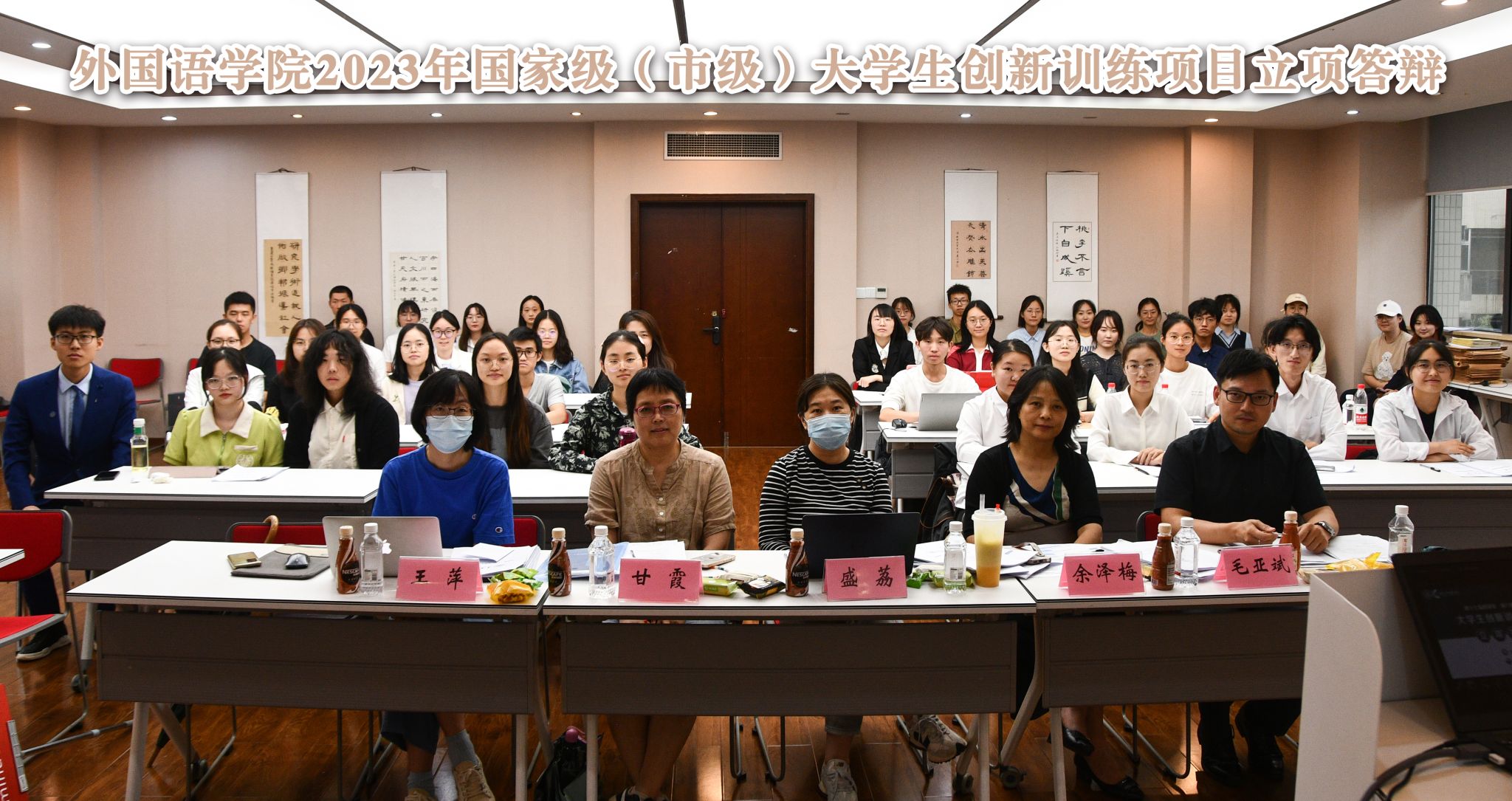 2023年第十七届国家大学生创新训练项目、第八届重庆市大学生创新训练项目立项答辩在学院楼501顺利举行。本次答辩邀请到基地杨小虎,英语系余泽梅、甘霞,日语系王萍,德语系毛亚斌等5位老师担任评委。学院各个年级各专业12个组别超40人参与答辩。
