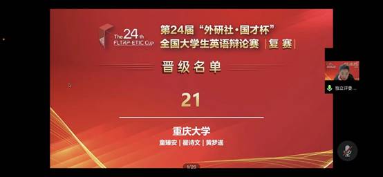 2022年4月16日-17日,第24届“外研社•国才杯”全国大学生英语辩论赛华西赛区复赛在腾讯会议线上举行,此次大赛有来自陕西、山西、河南、四川、重庆、甘肃等11省的92支代表队182位选手齐聚云端,同台逐鹿。