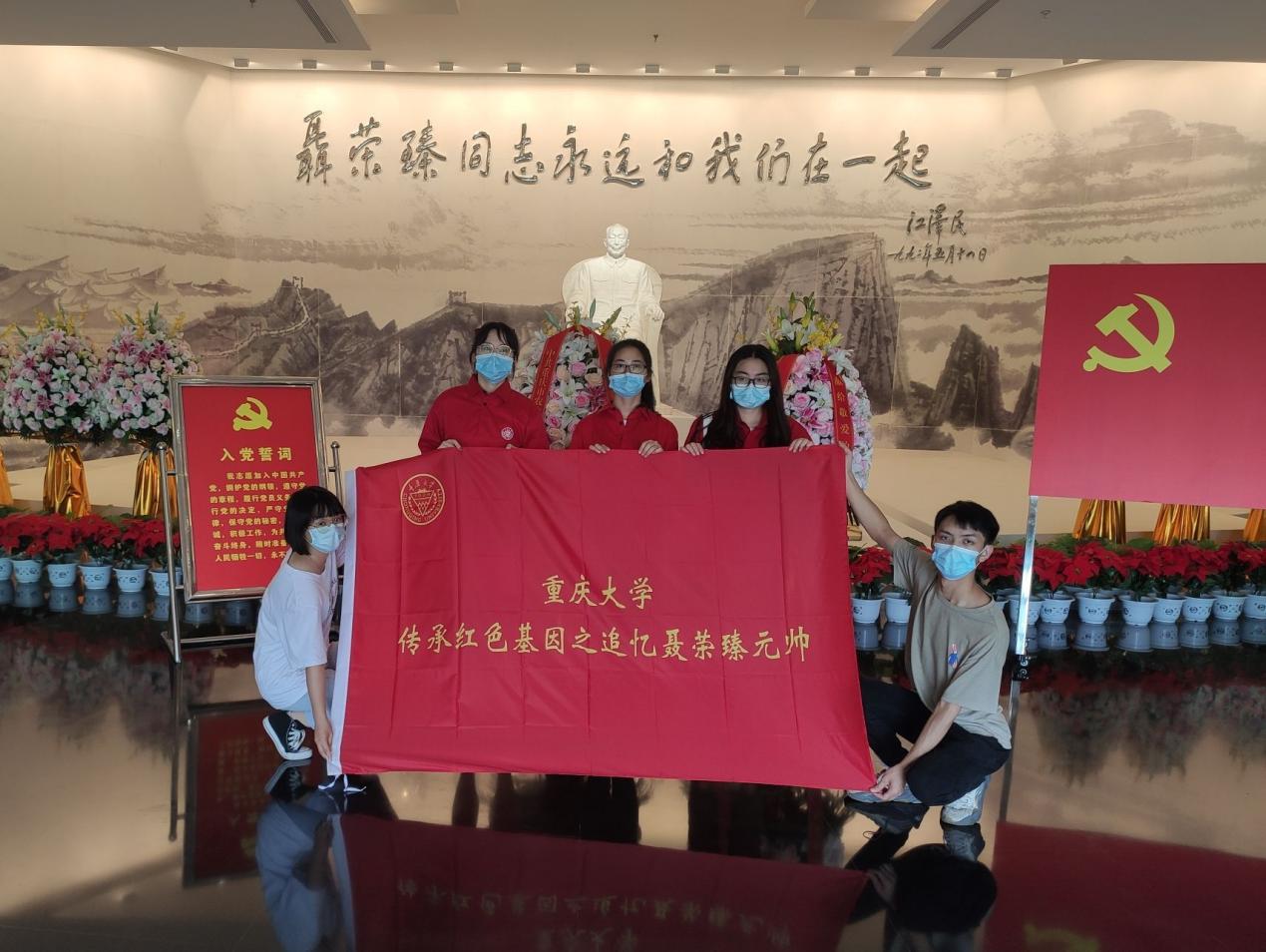 李思嘉同学牵头组织,成员有来自化学化工学院的蒋媛媛,计算机学院的王进恒,本科生院的宋雨薇和艺术学院的闫昊华同学。实践团队成员通过志愿讲解员的详细讲述,学习聂帅的生平事迹、抗战历史,传承红色精神,体现重大学子一心向党的积极风貌。