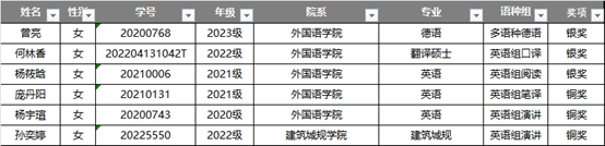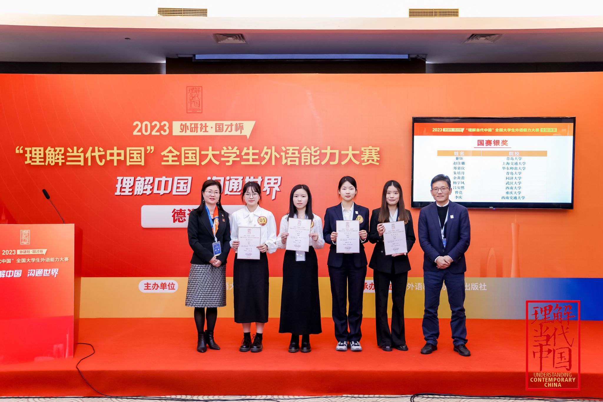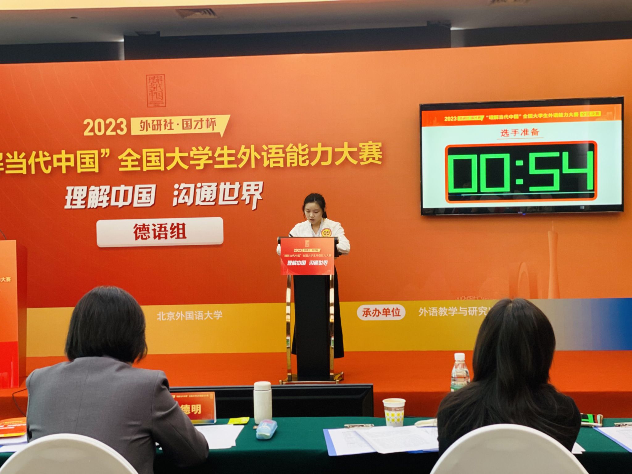 12月8日,2023“外研社·国才杯”“理解当代中国”全国大学生外语能力大赛国赛收官,大赛由北京外国语大学主办、外语教学与研究出版社承办,全国近2500名选手齐聚各赛场用外语诉说中华文脉的源远流长,中国发展的举世瞩目。我校6位选手分别从重庆赛区演讲、阅读、口译、笔译、多语种德语等5个赛项中脱颖而出晋级国赛,3人获得全国银奖,3人获得全国铜奖。