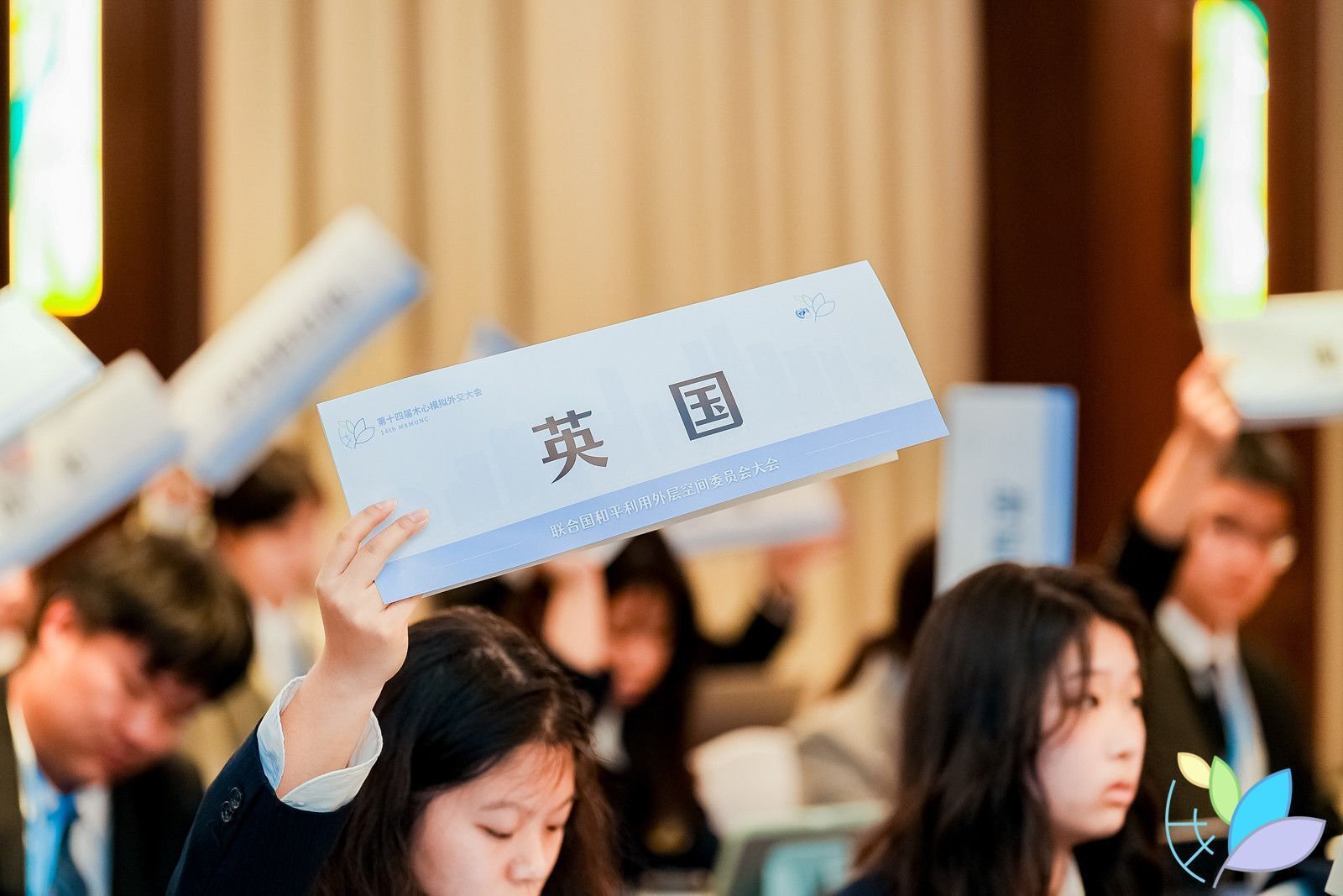 在联合国和平利用外层空间委员大会会场,作为大不列颠及北爱尔兰联合王国代表,我校博雅学院2024级人文科学试验班郭慧中立足本国航天战略,就“深空探索和资源开发的国际合作”议题主动建言,促进多方技术与资金支持的国际合作,协调发达国家和发展中国家多项诉求,最后参与起草决议草案,为未来深空资源国际合作贡献建设性路径。