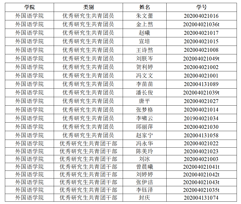 各位同学,2021年度重庆大学“优秀研究生共青团员”和“优秀研究生共青团干部”评选工作已完成。