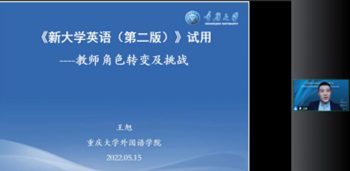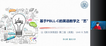 余教授从国家级规划教材《新大学英语》改版的原则出发,介绍了教材的课程思政、知行合一、学习转向和打造教学新形态等四个方面分享了教材的编写理念和使用方法。李小辉老师聚焦教学的艺术,从教学目标设定,教学设计及教学成果的呈现三个维度出发,以改编教材中的一个单元为例,向参会老师分享了基于PBL和新教材特点的教学实践和学生成果。王旭老师从教师角色转变和面临的挑战等方面做了分享。重庆大学团队的分享引起了参会者的热烈反响。