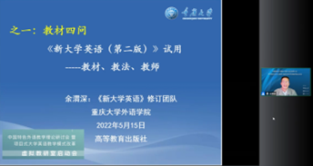 大学英语教学团队余渭深教授、李小辉副教授和王旭老师作为代表重庆大学大学外语PBL教学团队从教材开发、教学创新和教师发展三个维度在“中国特色外语教学理论与实践研讨会暨项目式大学英语教学模式改革虚拟教研室启动会”上做专题发言,此次会议由南京大学、东南大学和高等教育出版社主办,会议通过线上和线下相结合的方式进行,全国数千名老师参加了此次研讨会。